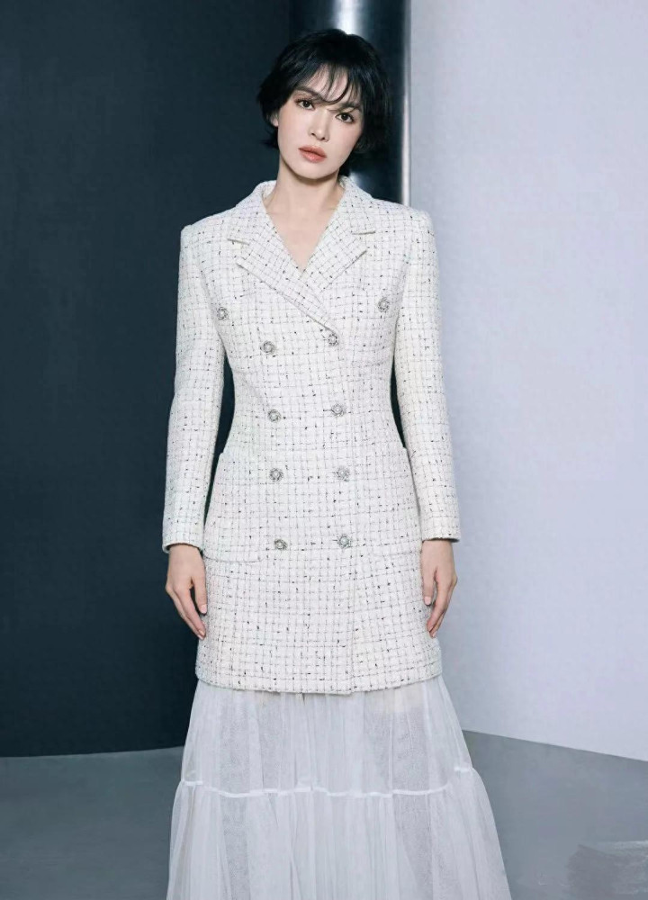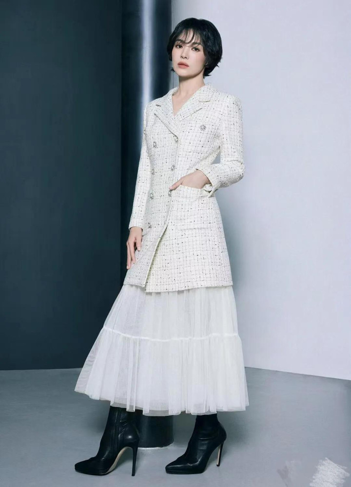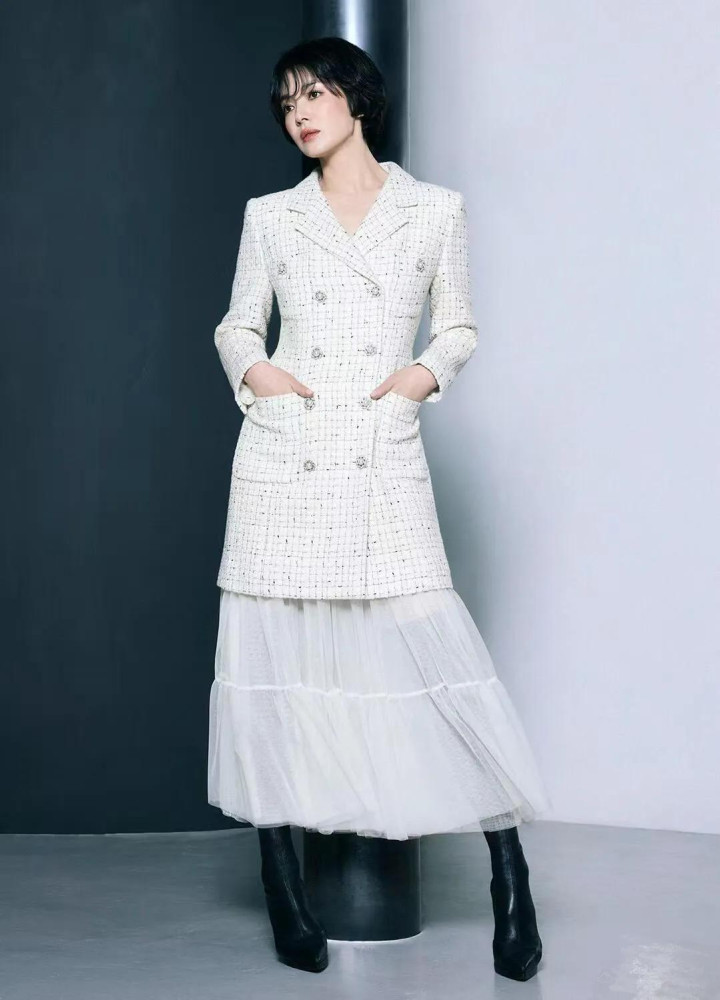 穿粗花呢外套+白色纱裙,高级又洋气!